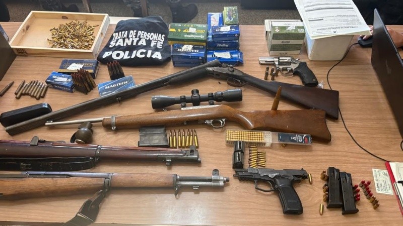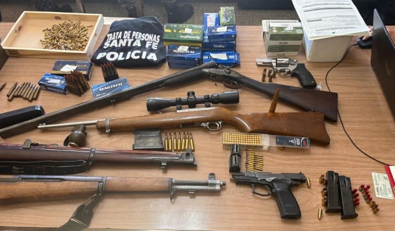 Durante los allanamientos, el personal interviniente secuestró siete armas de fuego —entre ellas pistolas, un revólver, una escopeta, una carabina y dos fusiles— junto a un importante volumen de municiones de distintos calibres, además de teléfonos celulares que serán peritados en el marco de la causa.
