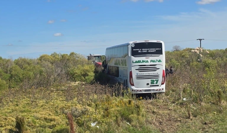 El colectivo trasladaba pasajeros, entre ellos agentes del Servicio Penitenciario de Santa Fe, que resultaron heridos tras el fuerte impacto.