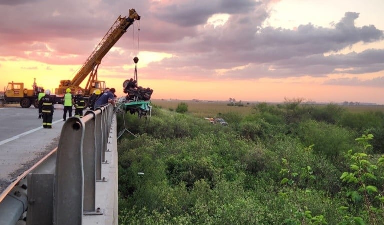 Un fatal siniestro ocurrió este martes en la autopista Rosario-Córdoba, a la altura del kilómetro 400, donde un camión con acoplado terminó dentro del arroyo Tortugas durante la madrugada.